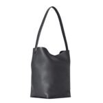 The bag features a north-south orientation, offering a sleek vertical profile that stands out in any setting. Its minimalist design is accented by clean lines and subtle stitching, making it suitable for both casual and professional environments. The double top handles ensure a comfortable carry, whether you are heading to the office, a meeting, or a weekend outing.