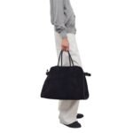 Its structured form is softened by the supple suede material, creating a graceful balance between formality and casual charm. The bag features double top handles and a detachable shoulder strap, offering versatile carrying options to suit various occasions. Whether you’re heading to a business meeting or enjoying a weekend outing, this bag adapts seamlessly to your lifestyle.