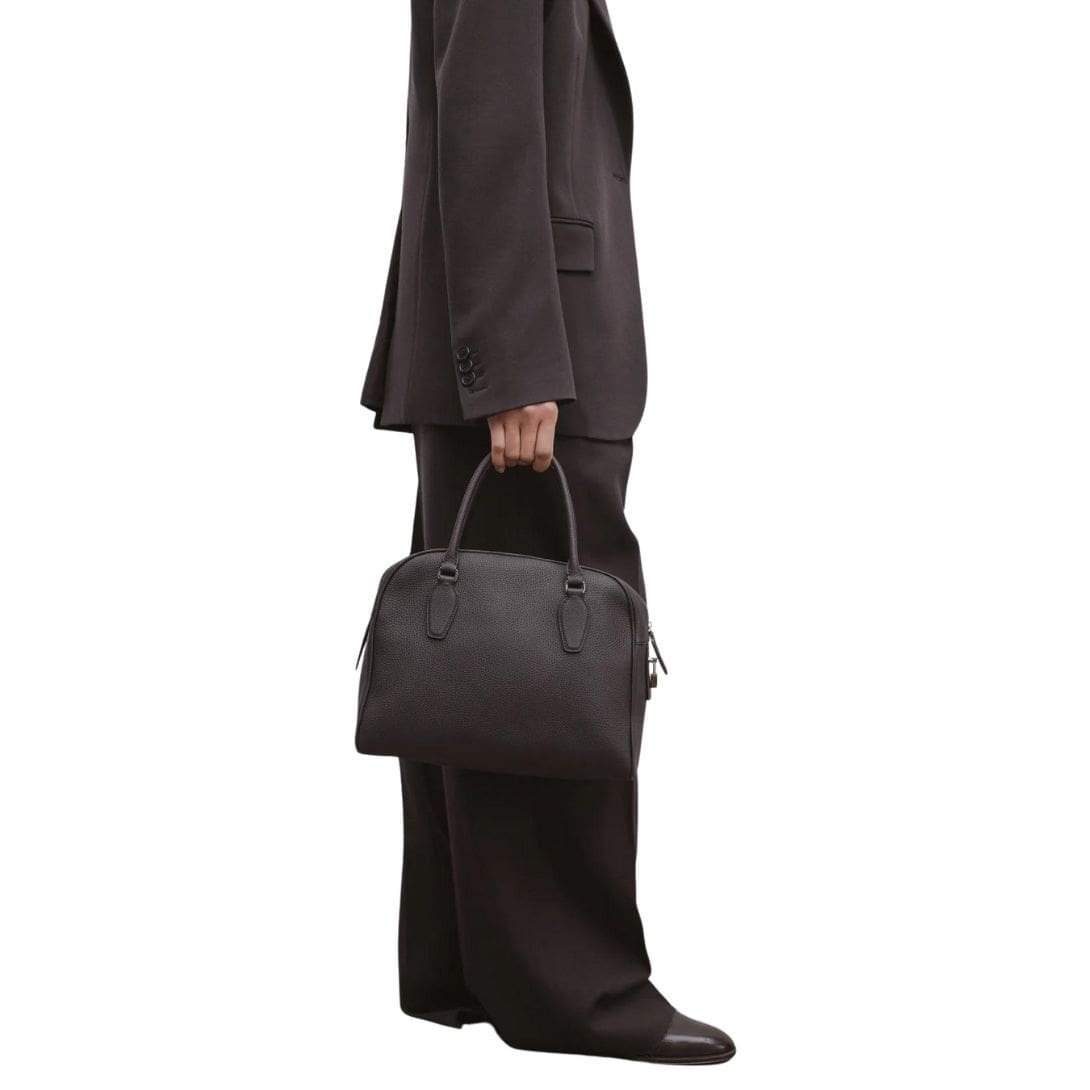 The Row India 12.00 Bag in Leather is a luxurious and sophisticated accessory from The Row, a fashion label known for its minimalist aesthetic and high-quality craftsmanship. This handbag embodies elegance and understated luxury, crafted from premium leather that gives it a timeless appeal.