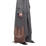 The bag’s handles are designed for comfort, allowing it to be worn over the shoulder or carried by hand. The absence of any visible logos or embellishments highlights the brand’s focus on quality craftsmanship and material rather than overt branding. This tote bag is available in a range of neutral tones, making it versatile and easy to pair with various outfits.