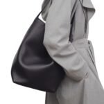 The bag’s handles are designed for comfort, allowing it to be worn over the shoulder or carried by hand. The absence of any visible logos or embellishments highlights the brand’s focus on quality craftsmanship and material rather than overt branding. This tote bag is available in a range of neutral tones, making it versatile and easy to pair with various outfits.